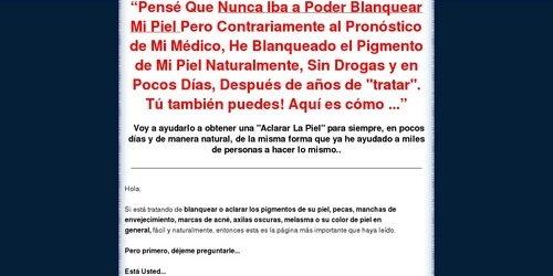 Estimado Blanqueamiento de la Piel Para Siempre, nunca había pensado que hubiera un posibilidad de blanquear mi piel. Sin embargo tras robar tu método vi como el melasma de mi nuca desaparecía! Encontré la mezcla perfecta para eliminar las zonas oscurecidas de mi piel. Antes había usado numerosos productos incluyendo Amelan, Obagi, y Peels pero nunca me dieron los resultados que buscaba. Has ayuda dado a mi piel a descubrir un nuevo amanecer. Muchas gracias por todo