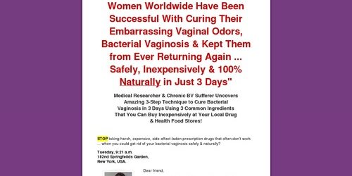 That’s another reason why I wrote this ebook … to get the real truth about how to get rid of BV out there – so women like you can stop wasting their hard-earned money and valuable time.