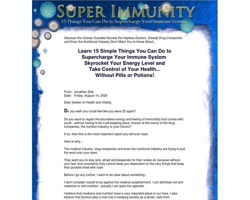 Super Immunity: 15 Simple Things You Can Do to Supercharge Your Immune System, Skyrocket Your Energy Level and Take Control of Your Health…Without Pills or Potions!