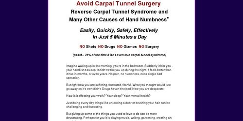 Courses and Gizmos that only are for carpal tunnel syndrome will not help you if that is not your problem. — Or will have limited value if your problem is coming from more locations than just the carpal tunnel area.