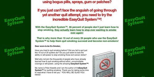 Well why not join the thousands of people who have already learned how to quit smoking without effort, uncontrollable cravings or will-power, using the amazing EasyQuit System™!