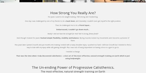 The book follows the principles outlined in Convict Conditioning (my bible when I was getting started) – but it expands on them. CC has a very limited number of progressions and does not pay attention to skill work, balance, flexibility and mobility, which makes it nearly impossible to progress if you are a beginner (I have been there). We take all we have learned in progressive calisthenics and give you a comprehensive guide which fills those gaps.