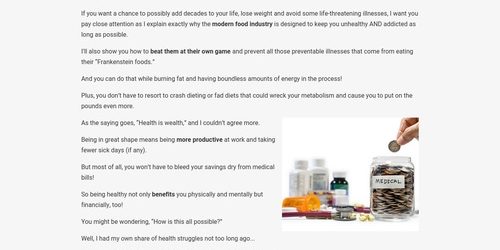 If you want a chance to possibly add decades to your life, lose weight and avoid some life-threatening illnesses, I want you pay close attention as I explain exactly why the modern food industry is designed to keep you unhealthy AND addicted as long as possible.