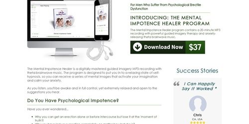 The Mental Impotence Healer program contains a 20-minute MP3 recording with powerful guided imagery therapy and anxiety-releasing theta brainwave music.