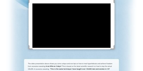 The video presentation above shows you some unique and rare tips on how to treat hyperhidrosis and achieve freedom from excessive sweating in as little as 2 days! This is based on the latest scientific research on how to stop the actual CAUSE of excessive sweating. *This is the same technique I have taught over 138,000 men and women in 157 countries to successfully treat their excessive sweating condition over the past 7 years!