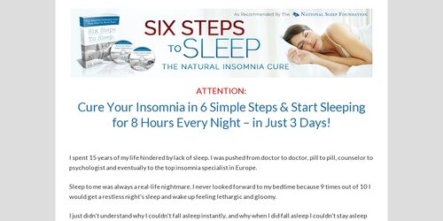 The Six Steps works. I know it does because I suffered from insomnia for 15 years and cured myself using these exact methods, and so have thousands of others.